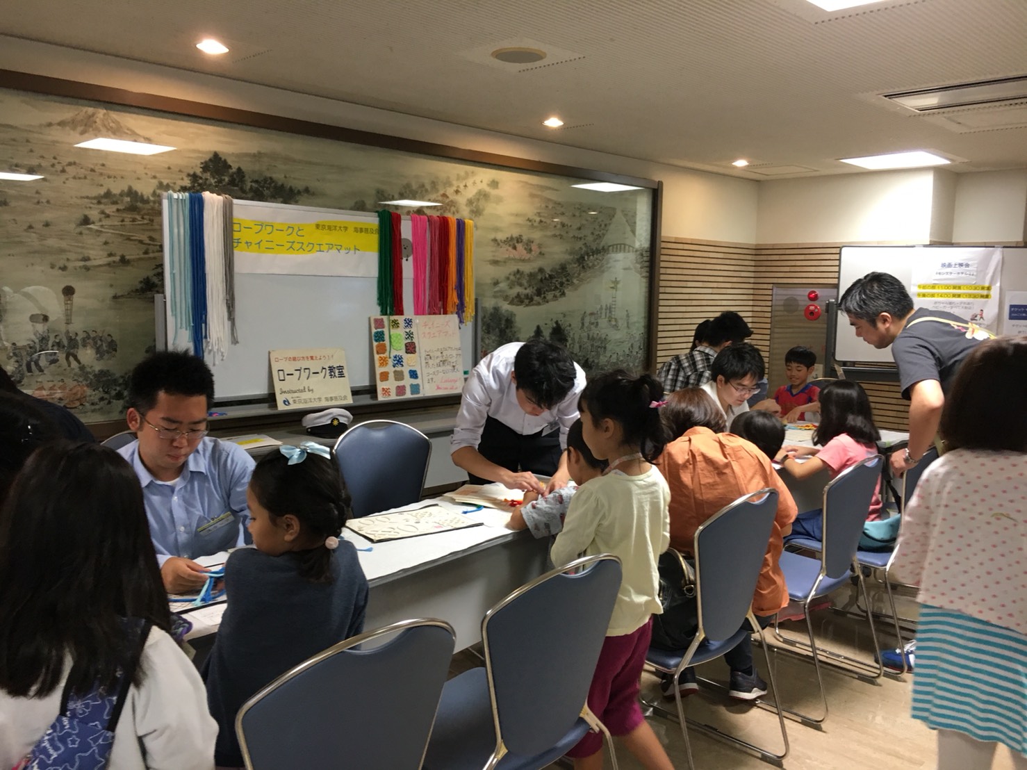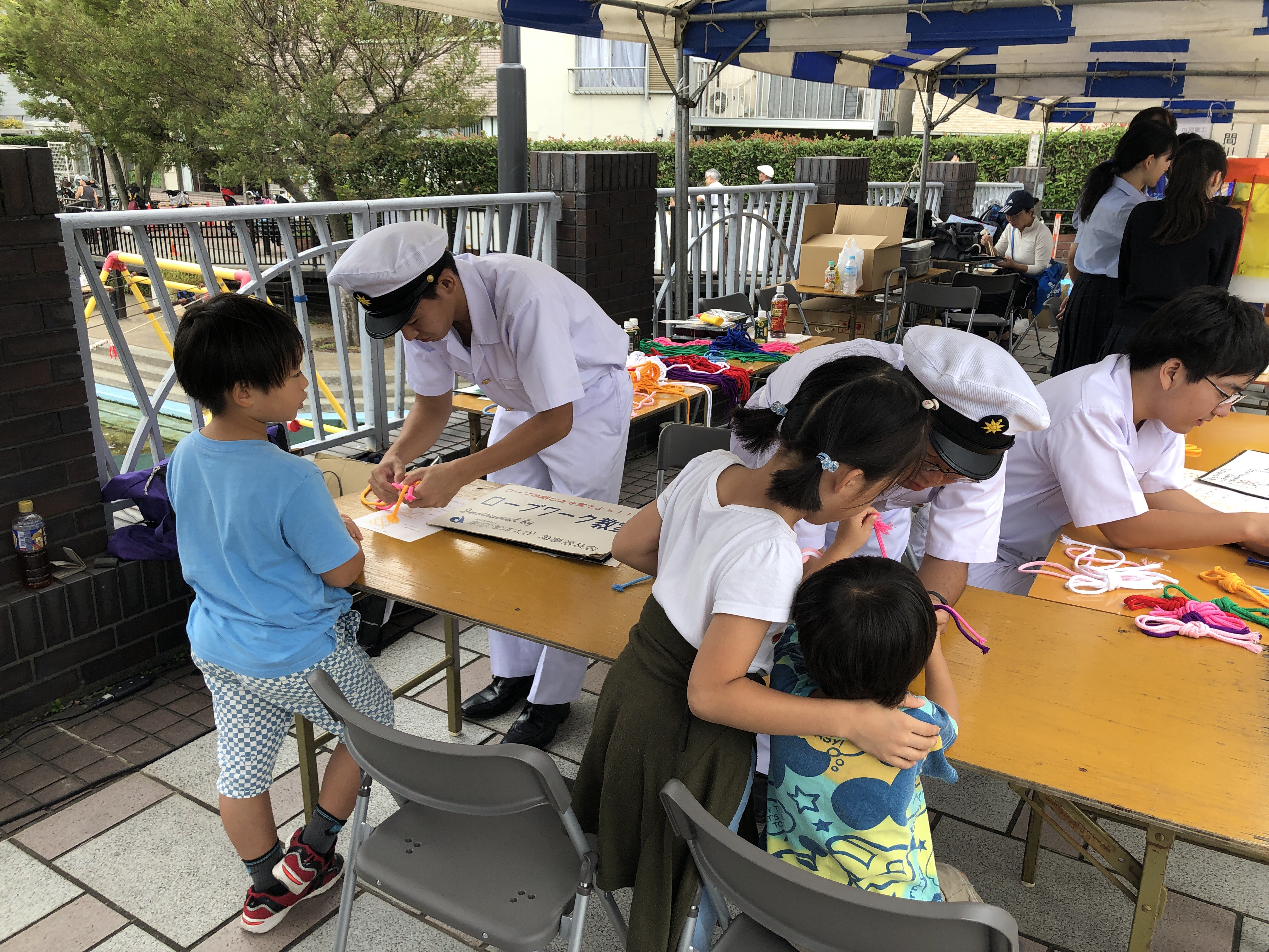 海事普及会はチャイニーズスクエアマット作りと手旗信号の実演を行いました。