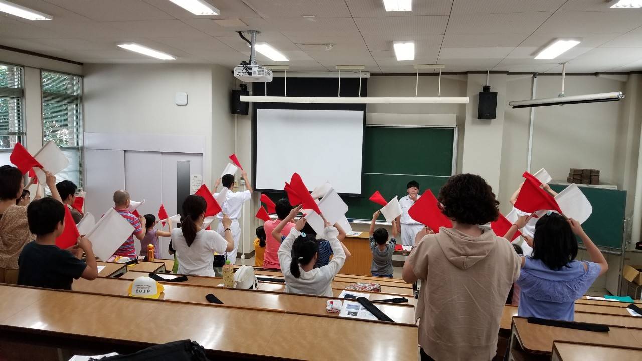 特に手旗信号に興味を示していただき、参加者の小学生達は各々の名前でやってみたりと積極的に挑戦していました。